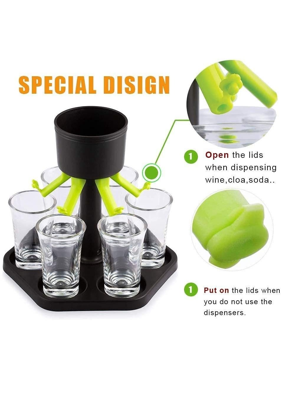 1. 【 6 Wine Glass Dispensers 】 Diversified alcohol dispenser bottles can provide perfect measurement every time, with a clean and elegant dispensing method. This water dispenser is perfect for vacations, party bars, and home bars. When you have free time at home, enjoy your wine time.
