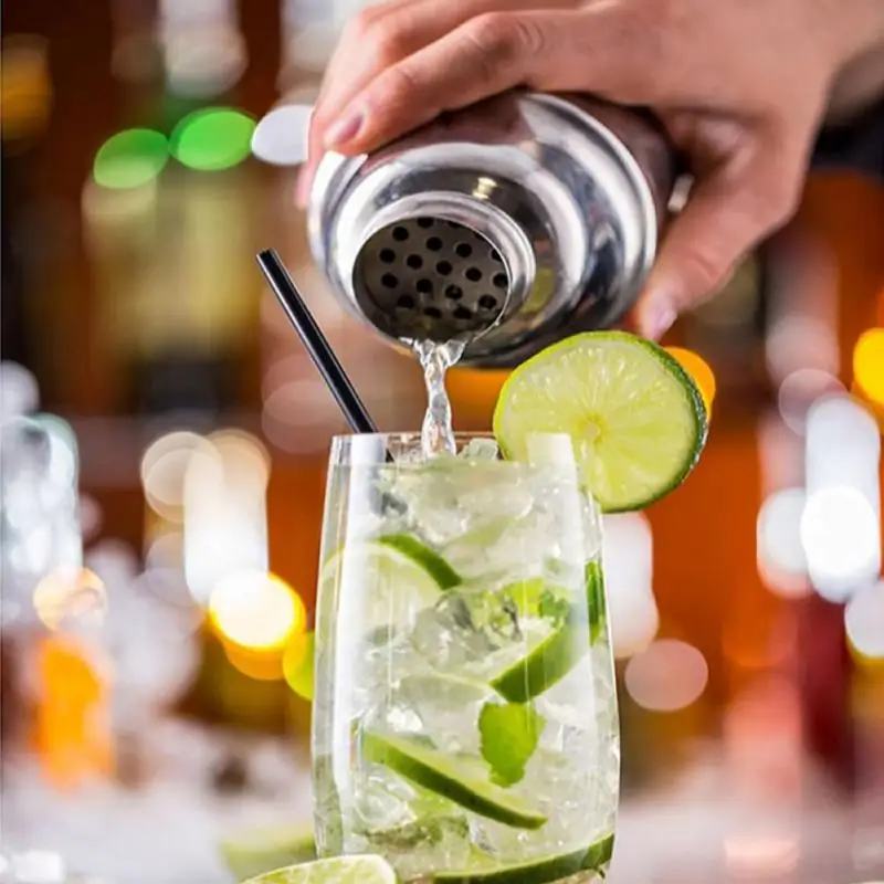 [Material de acero inoxidable de alta calidad] El juego de coctelera está hecho de acero inoxidable de alta calidad. Es inofensivo para la salud, duradero, a prueba de fugas, portátil, no es fácil de rayar, antioxidante, antiarañazos, no se deforma, fácil de limpiar. El Kit de coctelera es fácil de limpiar manualmente con agua tibia y jabón y mantiene fácilmente su brillo, agregando un toque artístico moderno a su bar de casa.