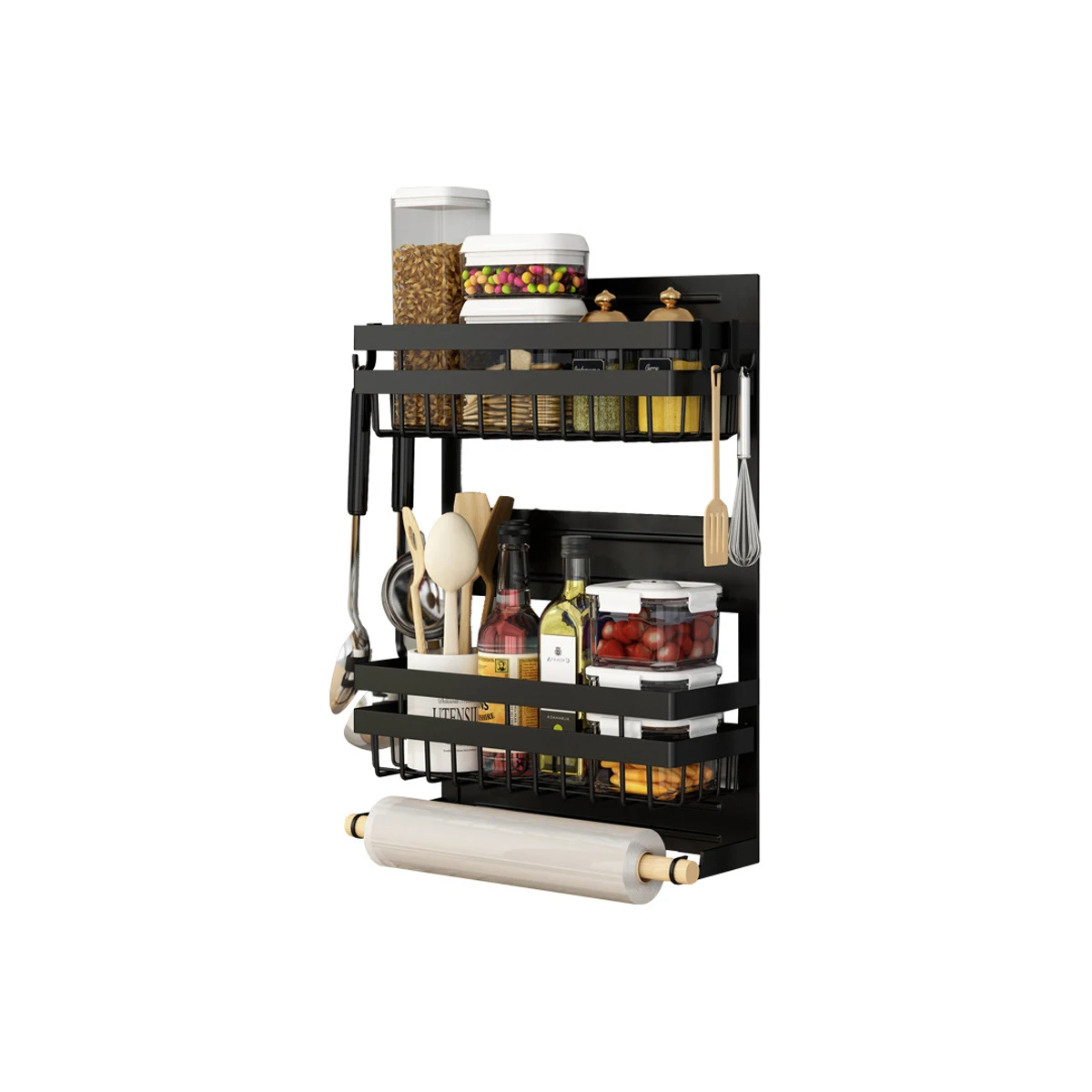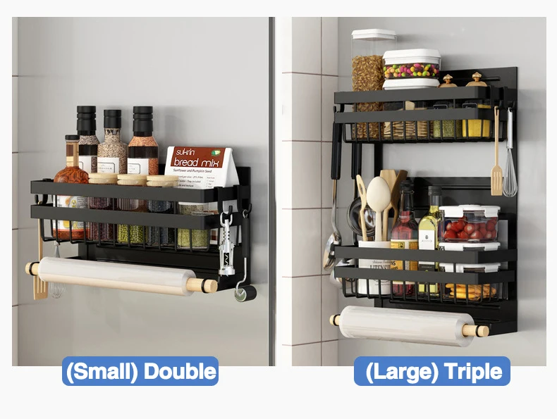Perfect. The magnets are extremely strong and this can store a decent amount and keep kitchen paper off of the sides.
