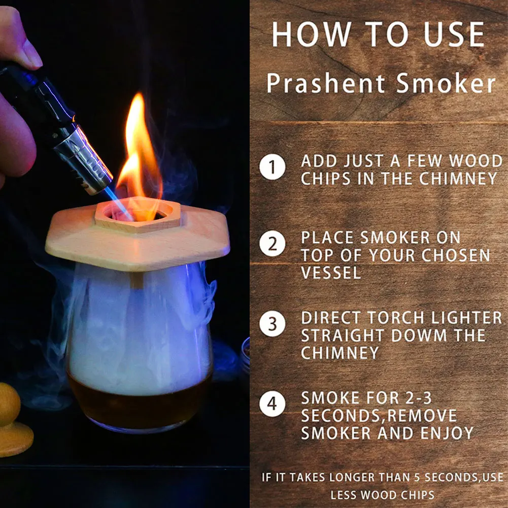 No es solo un cóctel de humo, puedes fumar lo que quieras, como carnes, queso, café, whisky y varios alimentos o bebidas.