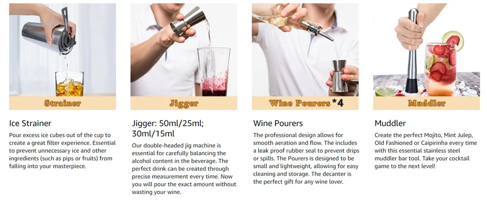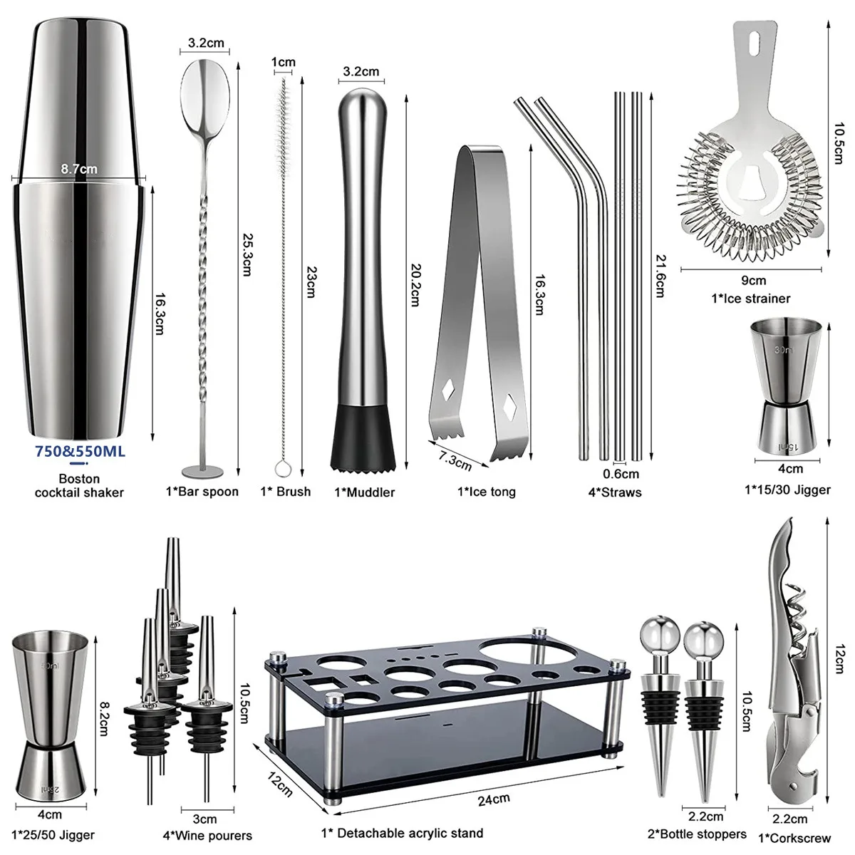 Juego de cóctel de 20 piezas: ¡Ahora tiene las herramientas más básicas para hacer bebidas de calidad! No importa dónde se encuentre, puede hacer su propio cóctel perfecto.
