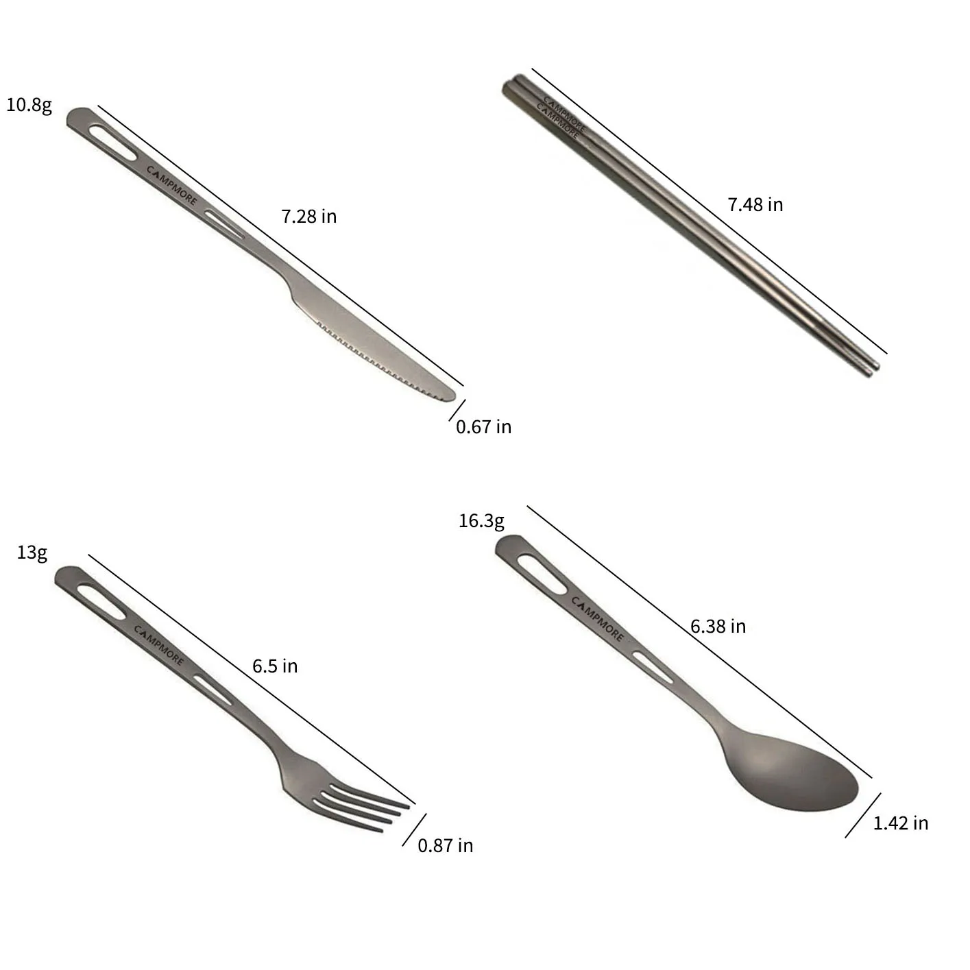 Tamaño: Cuchillo: 185MM/tenedor: 165MM/cuchara: 162MM/palillos: 190MM